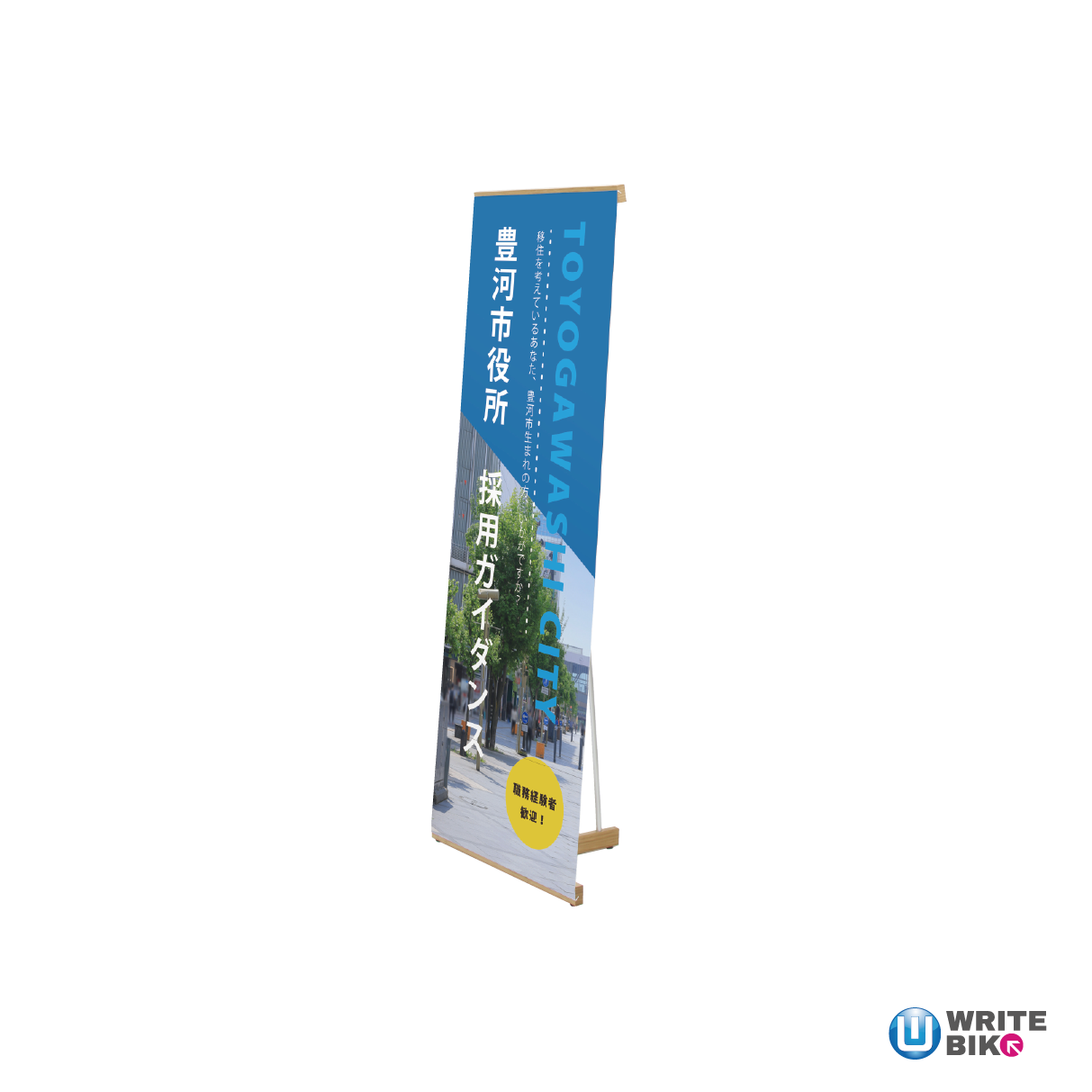 バナースタンドとは、旗や幕にデザインを印刷した、自立式の看板のことです。集客や販促、宣伝を目的に設置されることが多く、イベントや展示会、店頭販促などさまざまなシーンで活躍しています。