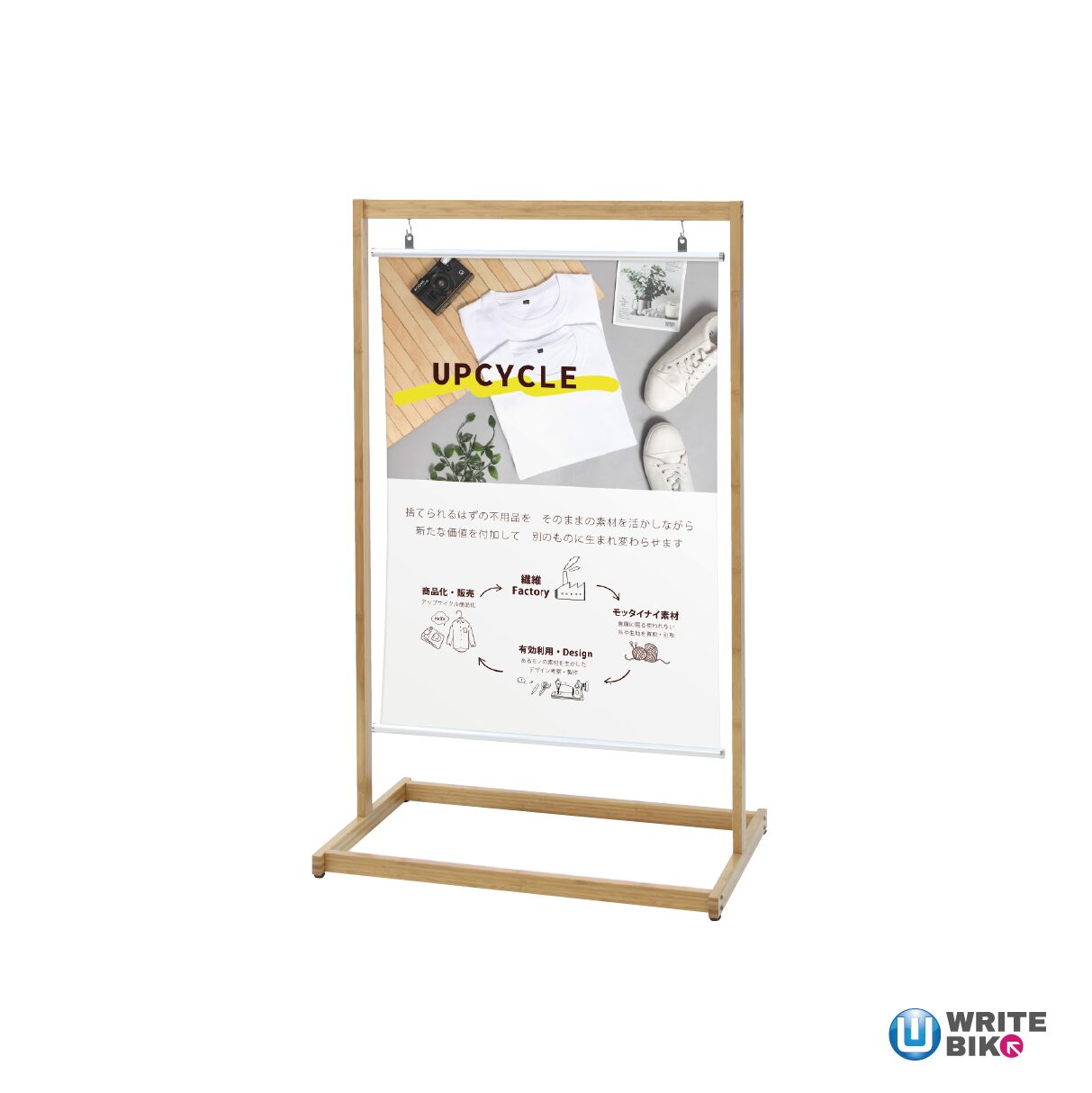表示面のデザインは、記事を取り替えることでスタンドはそのままに使用でき、季節イベントやキャンペーンごとに使いまわしができる点も経済的で嬉しいポイントです。