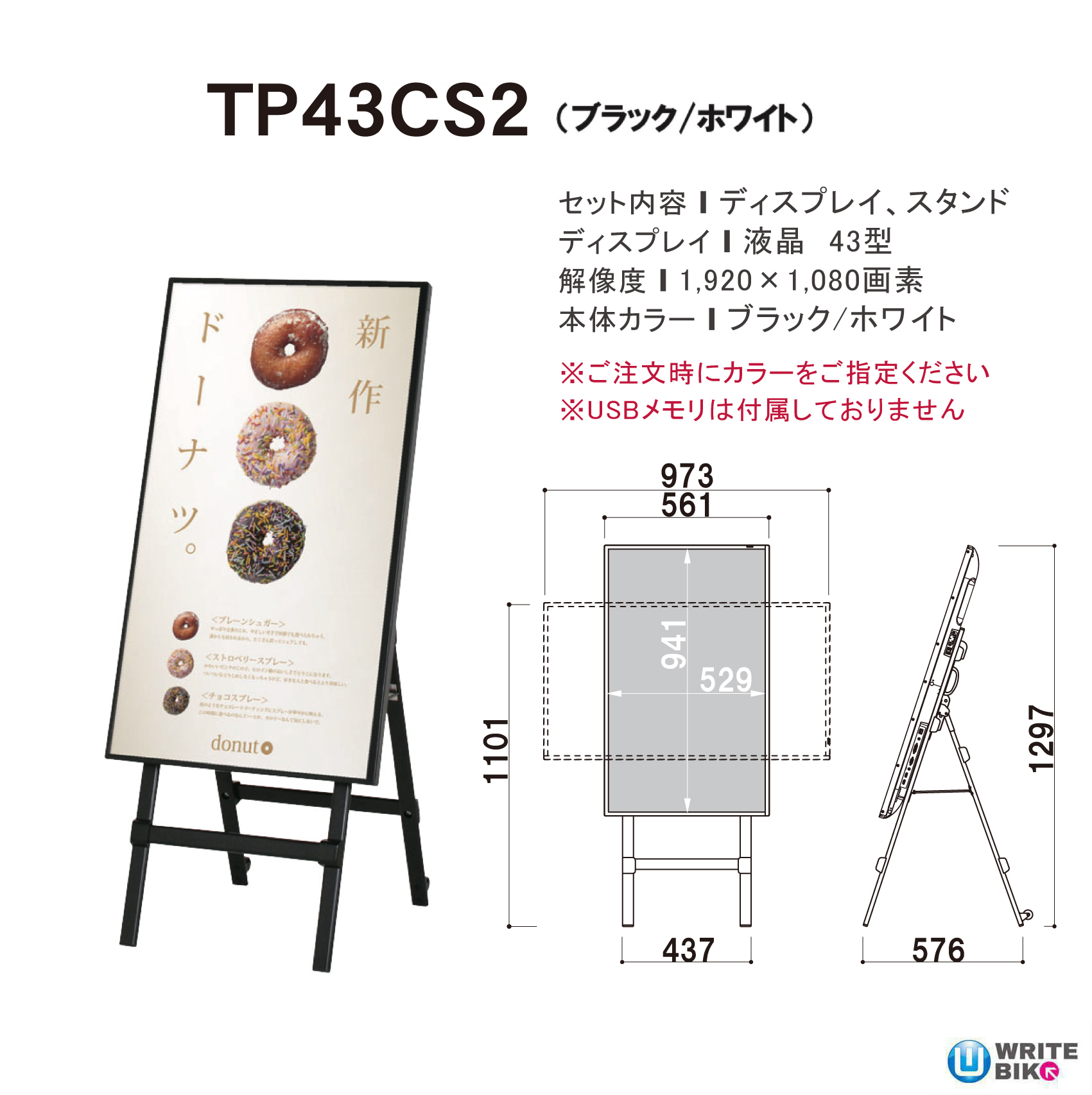 ディスプレイ仕様は、43型、動画再生可能、静止画スライドショー可能、USBメモリ対応です。
