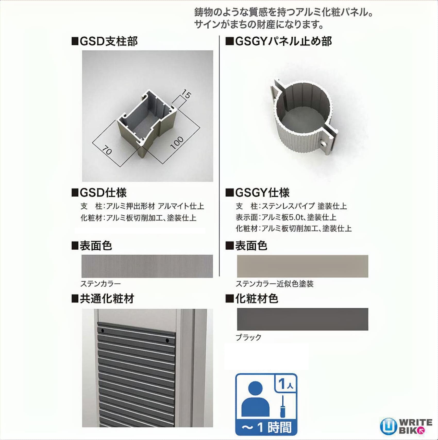 キャストライクサインGSD・GSGYタイプは鋳物のような質感を持つアルミ化粧パネルを使用した自立看板になります。公園や施設の案内図はもちろん、企業、お店の看板にも馴染むシンプルなデザインの自立サインです。