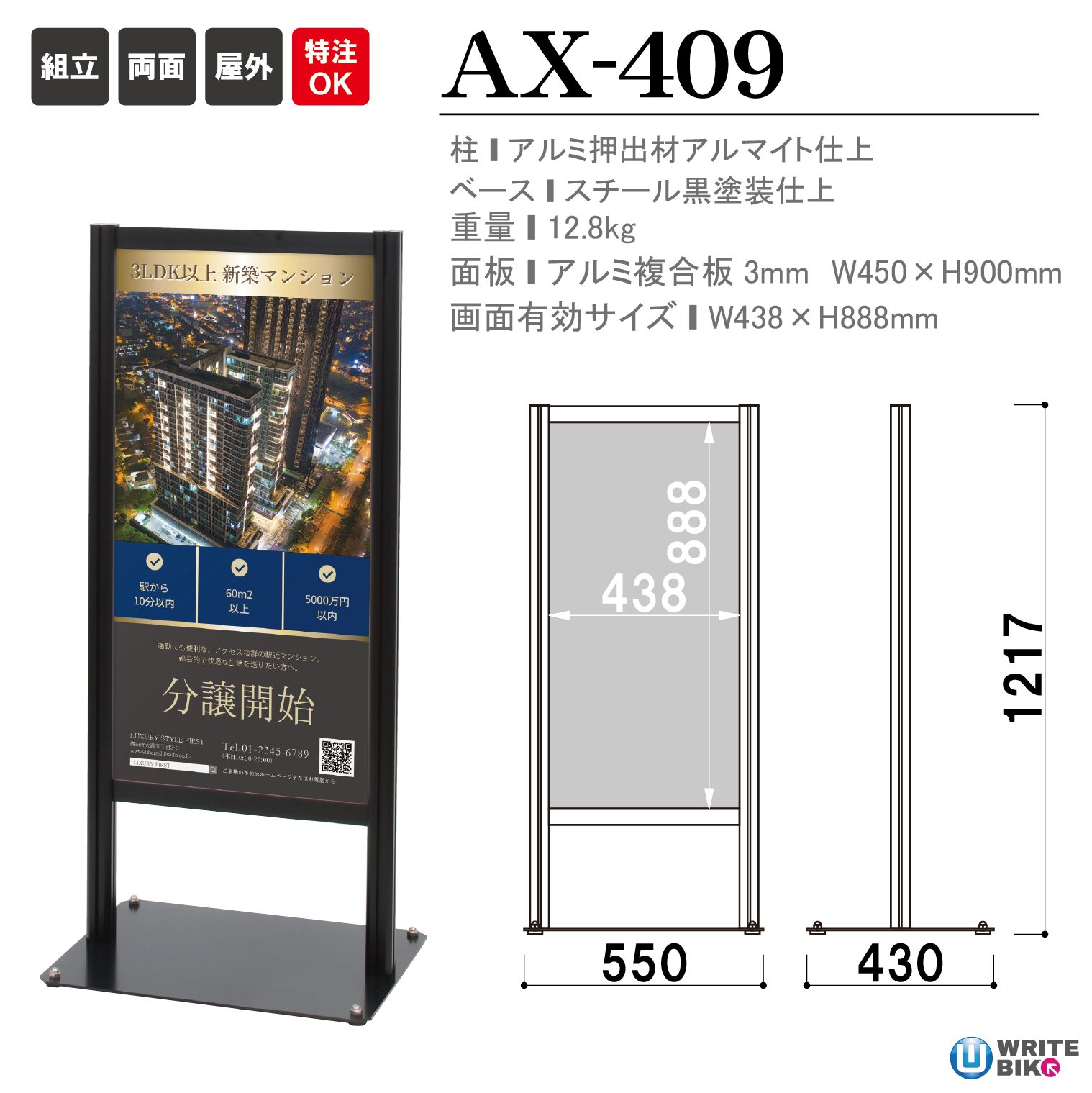 AX-409は大きめサイズで案内できる屋外でも安心なT型スタンド。